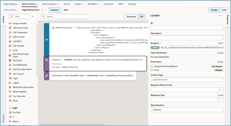 • Action Hint: Get One (this helps VBCS treat the response as a single object)