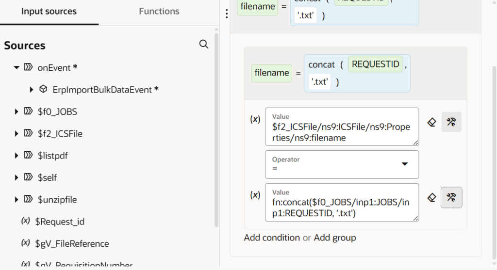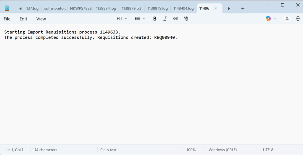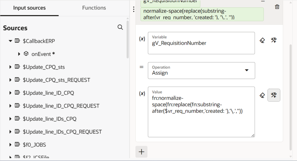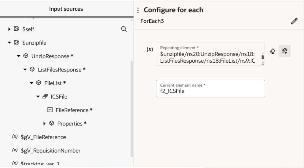 An integration is executed, for example an FBDI integration, where in the callback integration a text or log file needs to be read in order to extract required data such as Requisition Number, Invoice Number, etc.